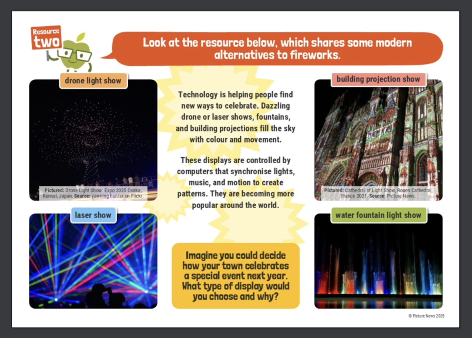 Sometimes people celebrate with fireworks. On Wednesday it will be a special day called Bonfire Night. Some people like to set off fireworks.