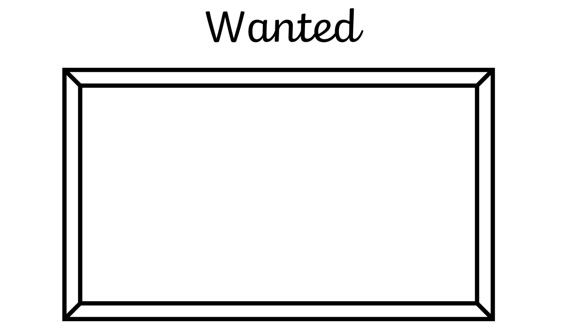 This is what a wanted poster looks like. It has a picture, a description and reward.