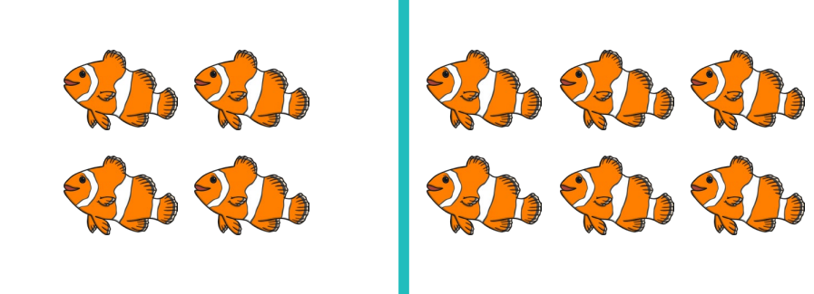 Look at the plates. Can you show which plate has fewer? (complete practically)