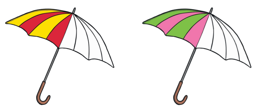 Can you help me to colour in the umbrellas with the correct colours?