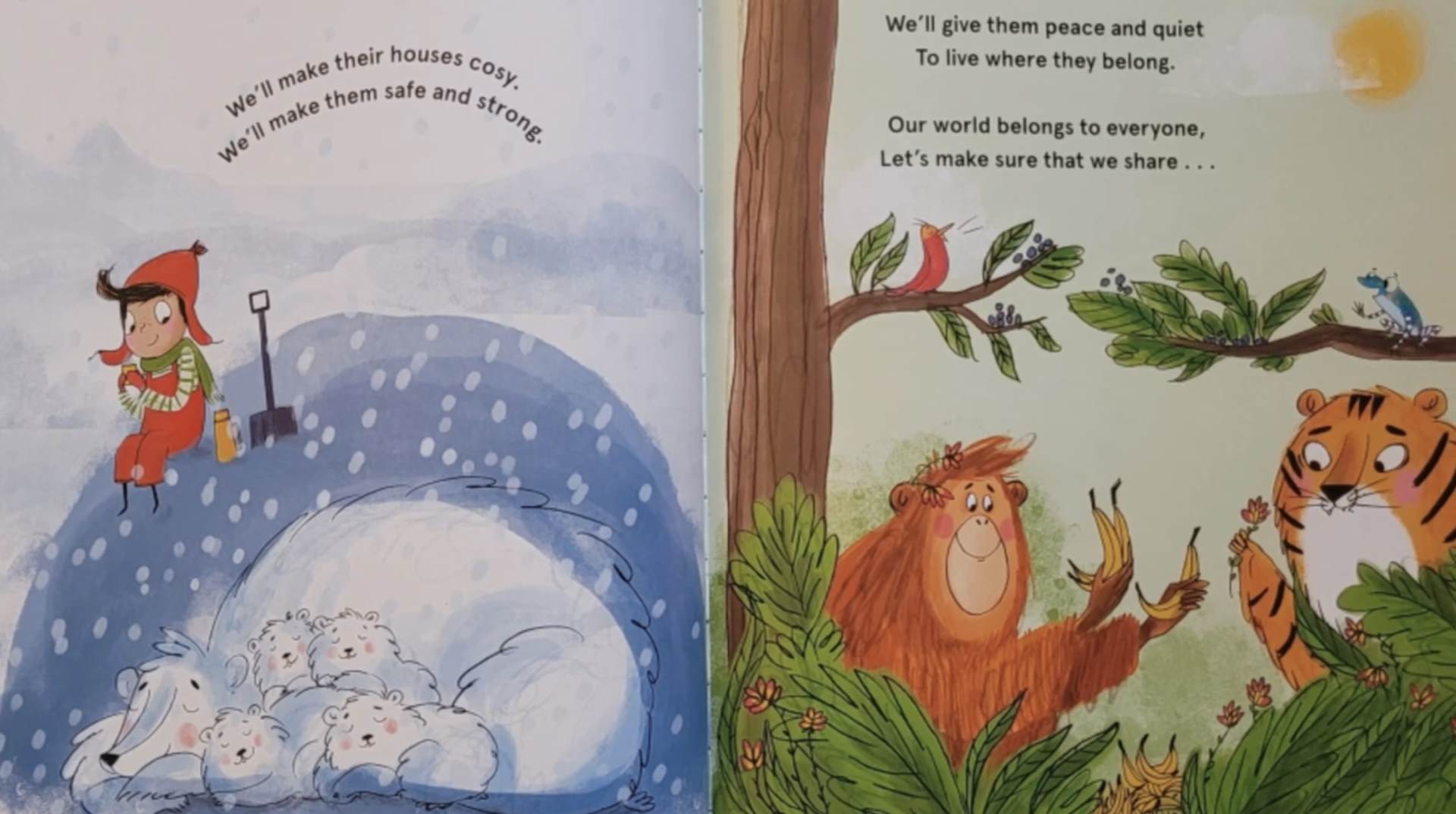 Life on land means all the plants, animals, trees and insects that live on our Earth — in the woods, the fields, the gardens and even in our own backyards. In R.E. we talked about how God made the world and he asked us to look after all the creatures and be kind to them. Animals need homes, just like we do. They live in different places around the world like forests, the ocean, the arctic and some we keep as pets. These homes are called habitats. Global Goal 15 helps us remember that we must care for animals, plants and the land, so they can stay happy and safe.