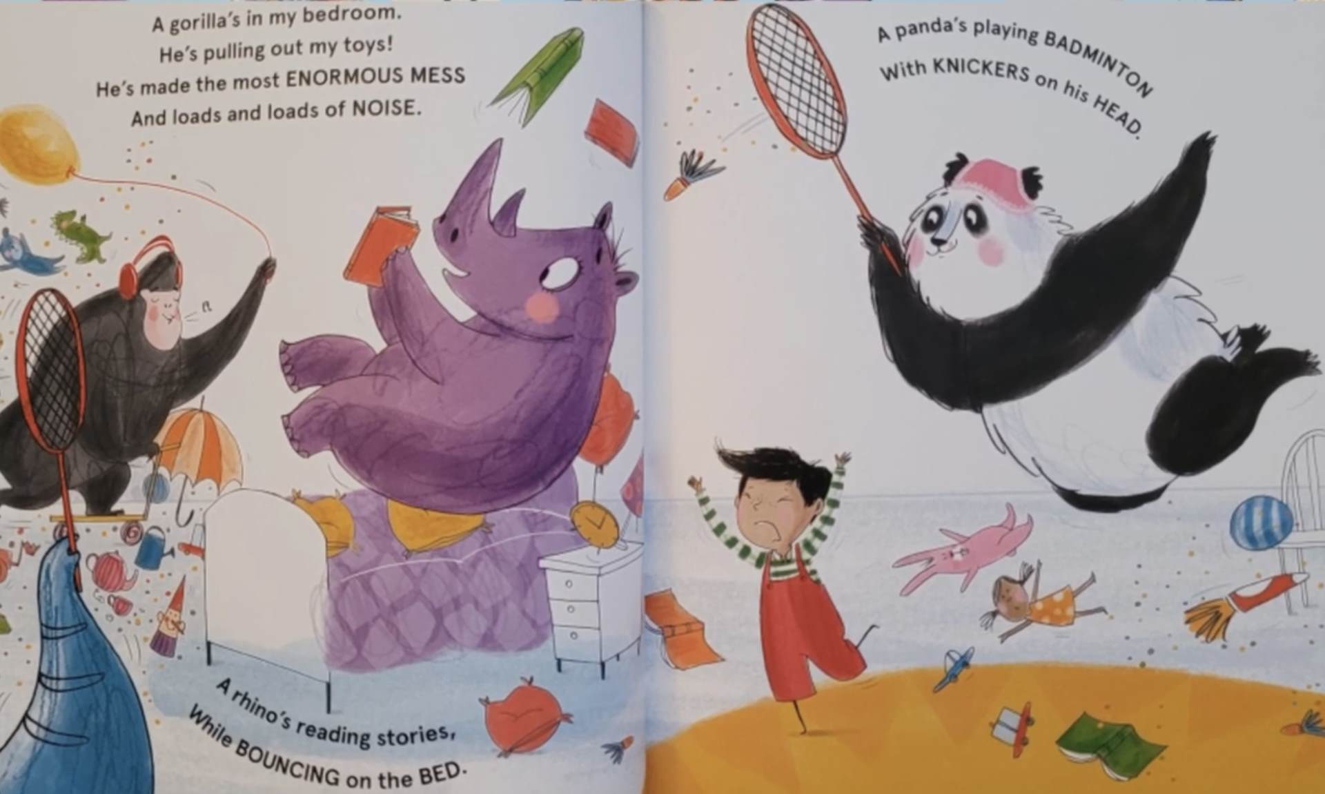 A panda's playing badminton with...
