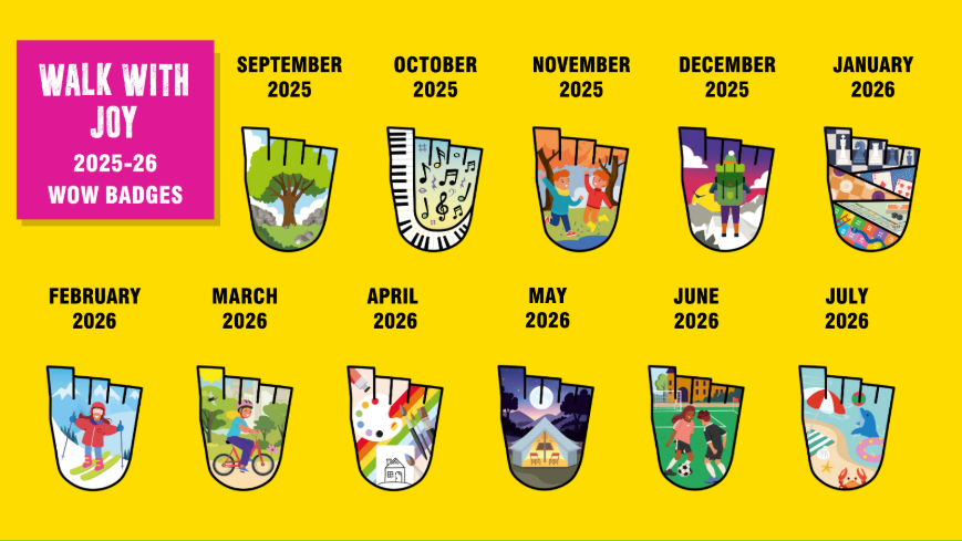 'Walk with Joy' takes pupils on a journey of exploration of all those little things that bring happiness, creativity and joy to our lives. There are a selection of badges ranging from Jumping in Puddles to Painting up for grabs.