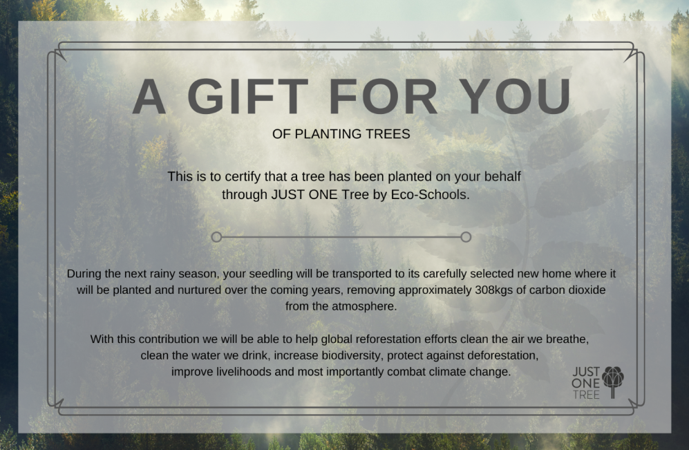 Eco schools have also planted a tree on our behalf on receiving our Green Flag award with distinction