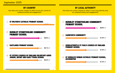 We also take part in the Autumn, Spring and Summer Top Ten challenges. The challenges last for a month and at the end of the month, the Top Ten schools are listed on the WOW Top Ten leaderboard. Our aim this year is to top the leaderboard on the Autumn, Spring and Summer Top Ten Challenges, following topping the leaderboard in the Summer term.