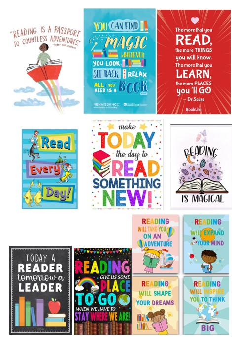Create a poster that encourages children to read for pleasure. Make it bright and attractive and make your message stand out. Here are some examples to help you with ideas.