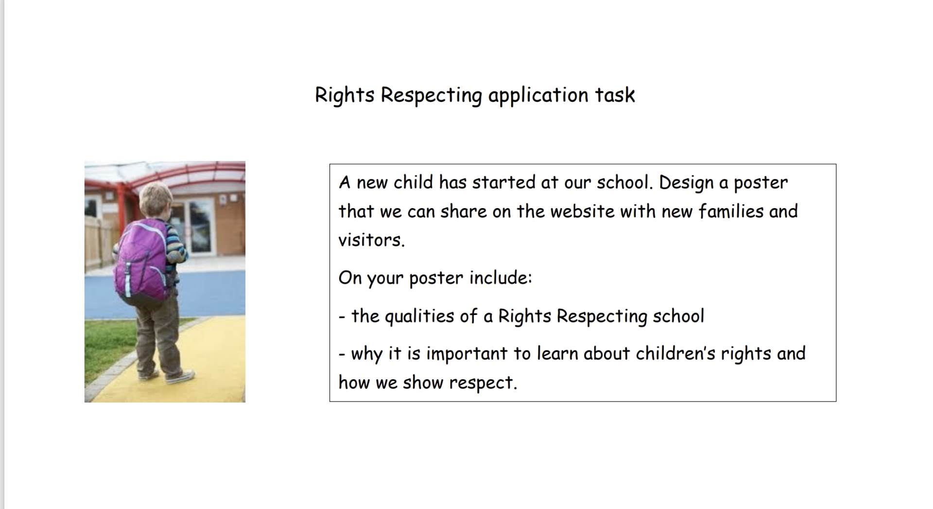 Application Process- To become a Rights Respecting Ambassador, the children had to create a video outlining the qualities that they could bring to our team. The children were then shortlisted and elected through a voting system to promote democracy.
