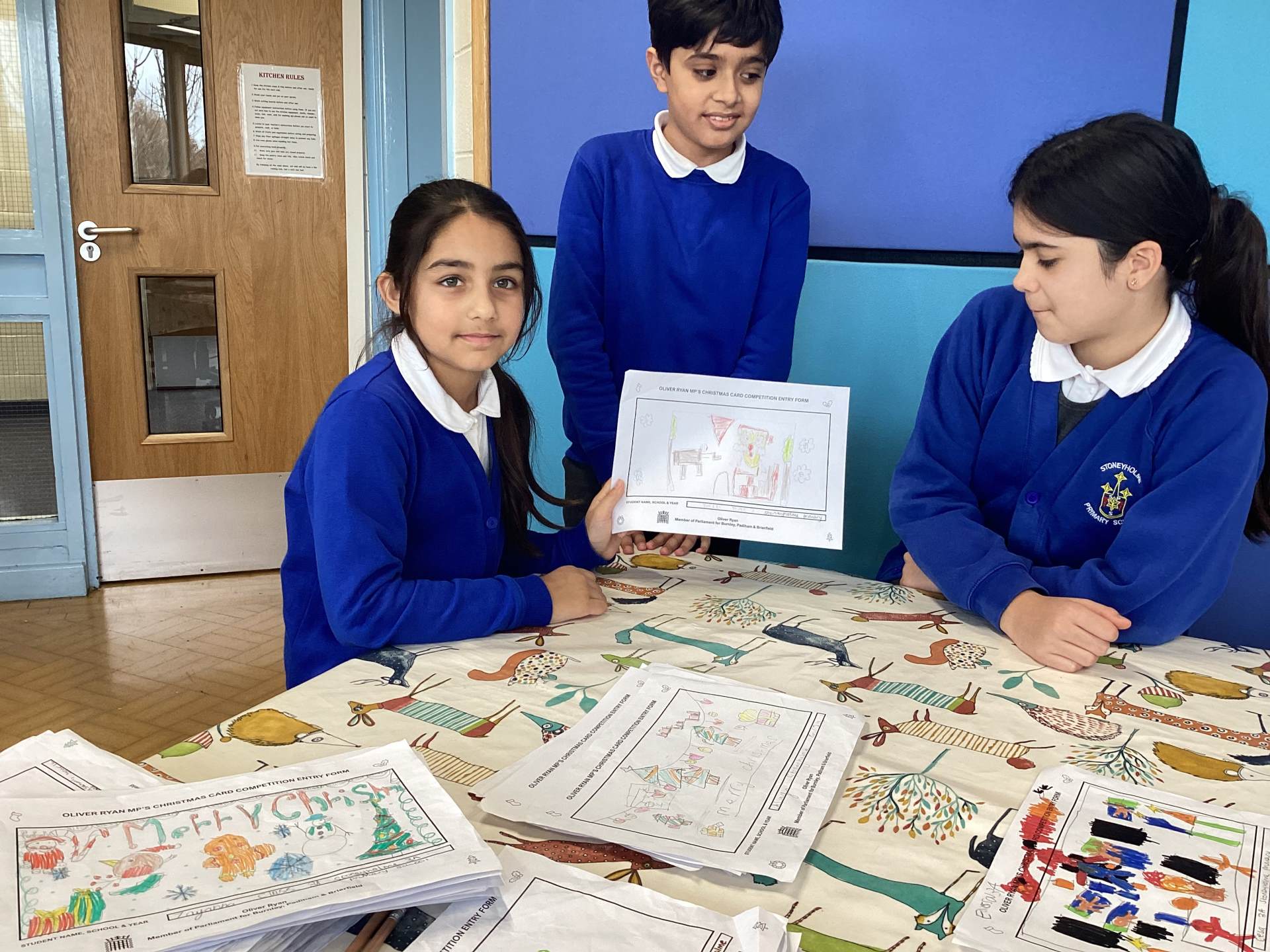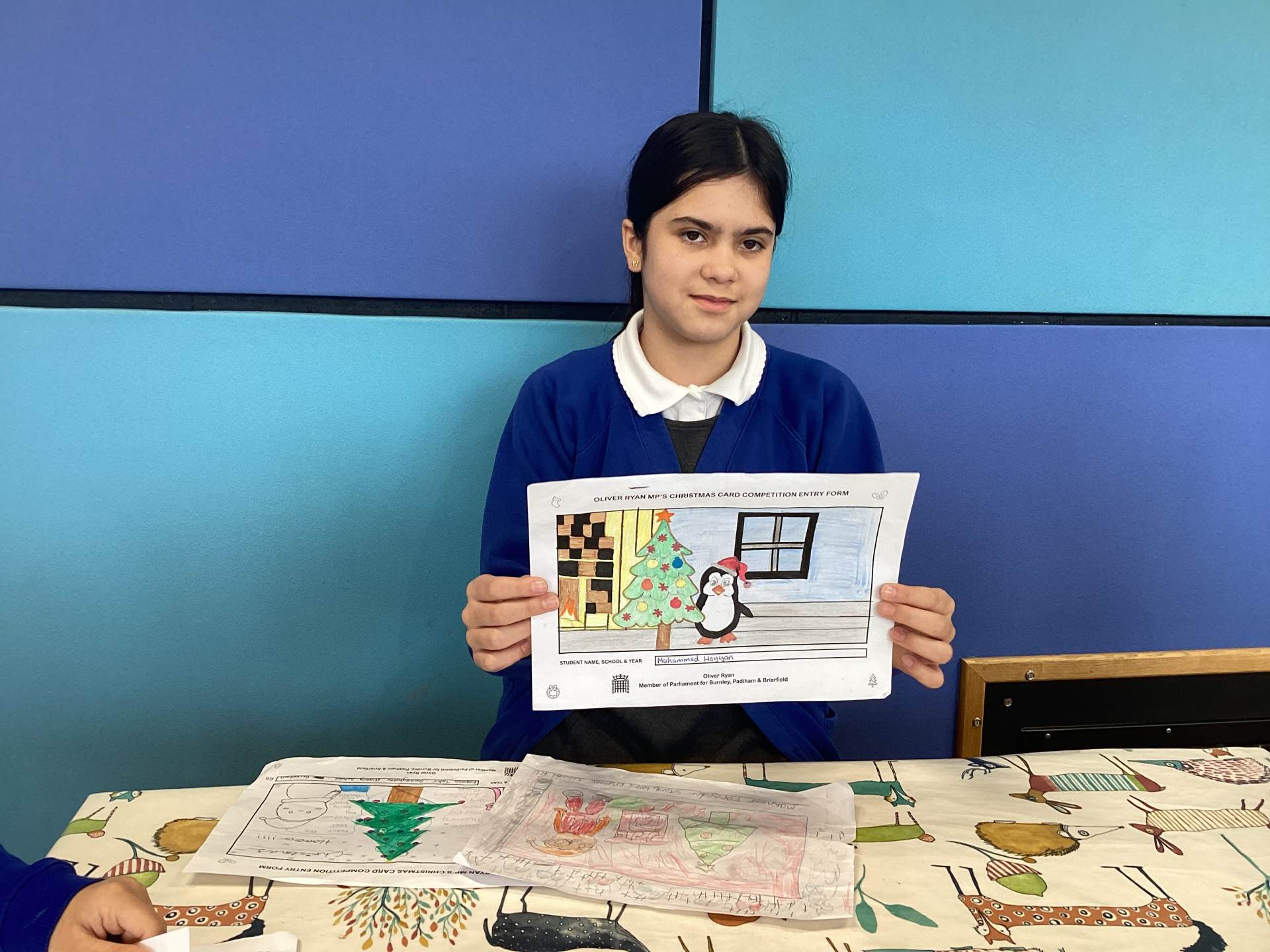 The RE Ambassadors helped to choose the best entries for the Christmas Card Competition organised by the local MP, Oliver Ryan, for schools in Burnley.