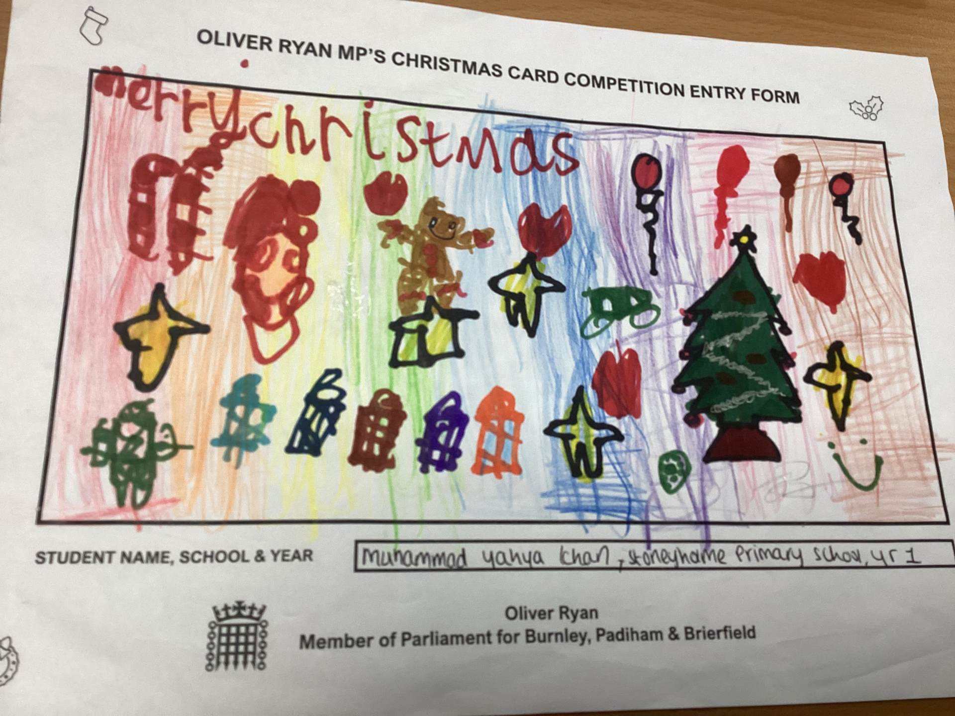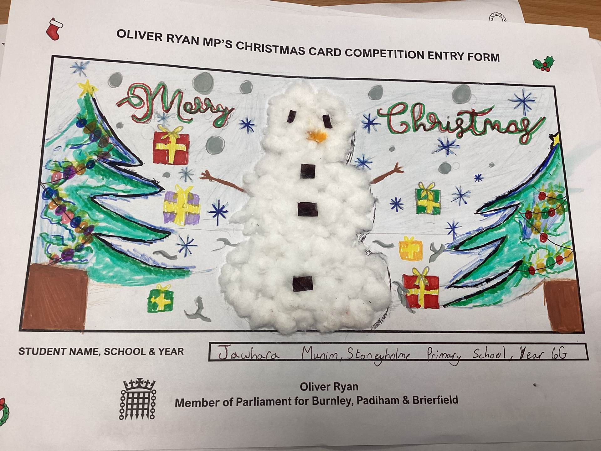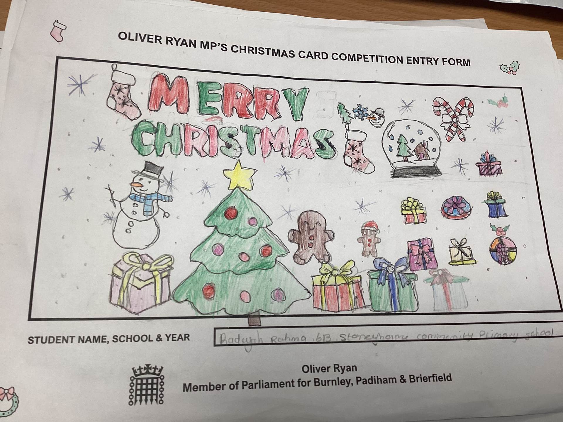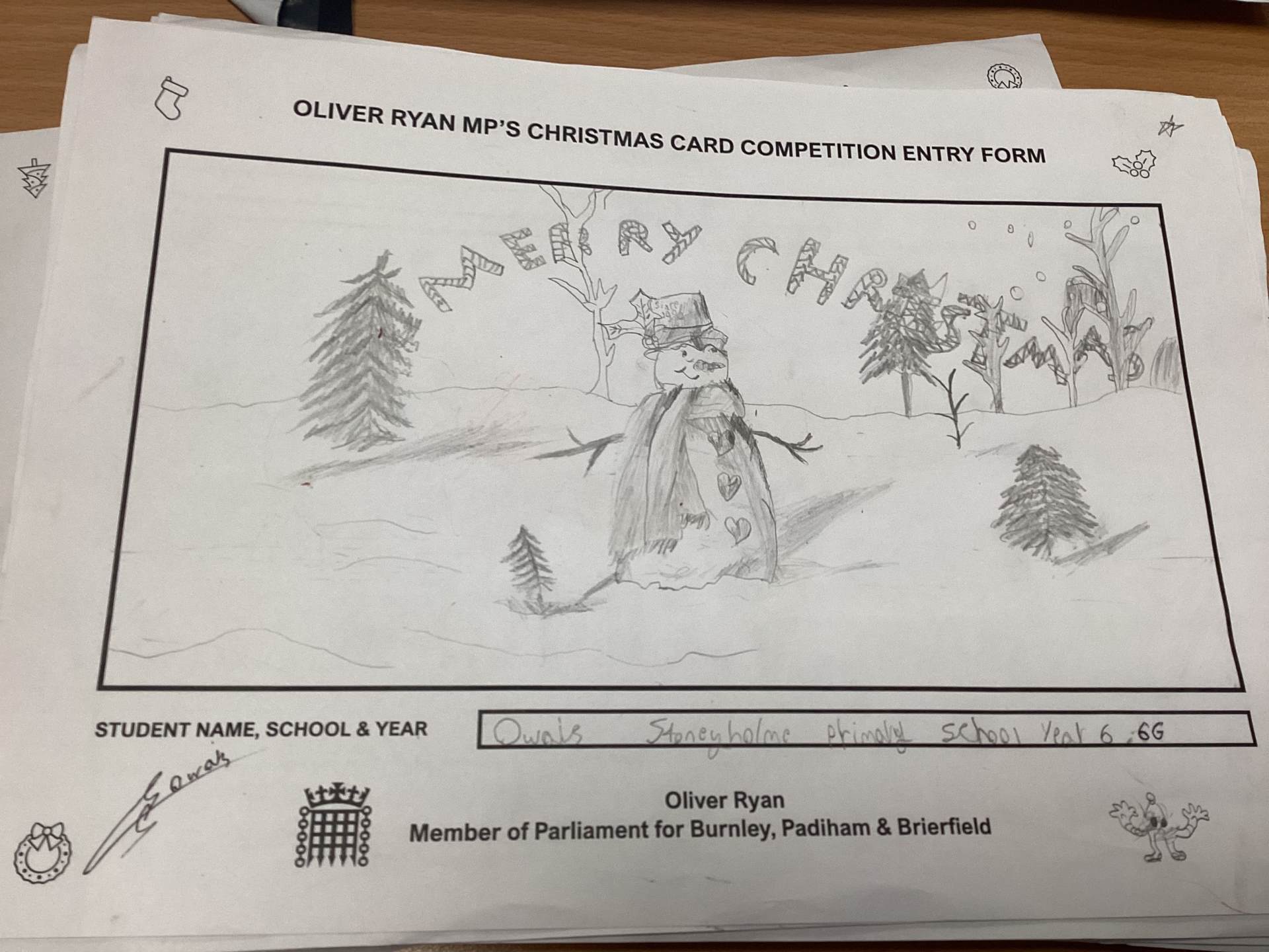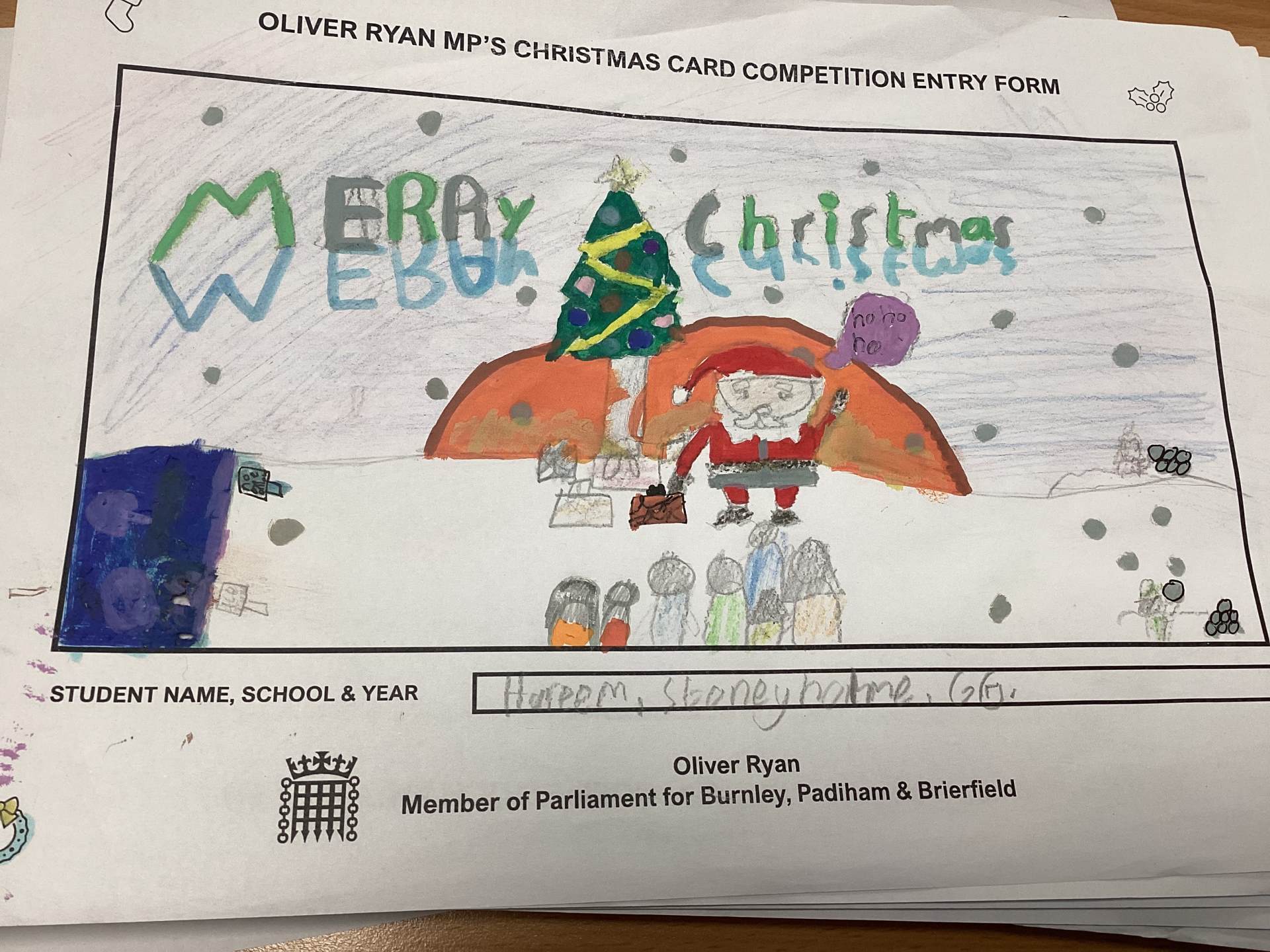 Oliver Ryan's Christmas Card Competition.