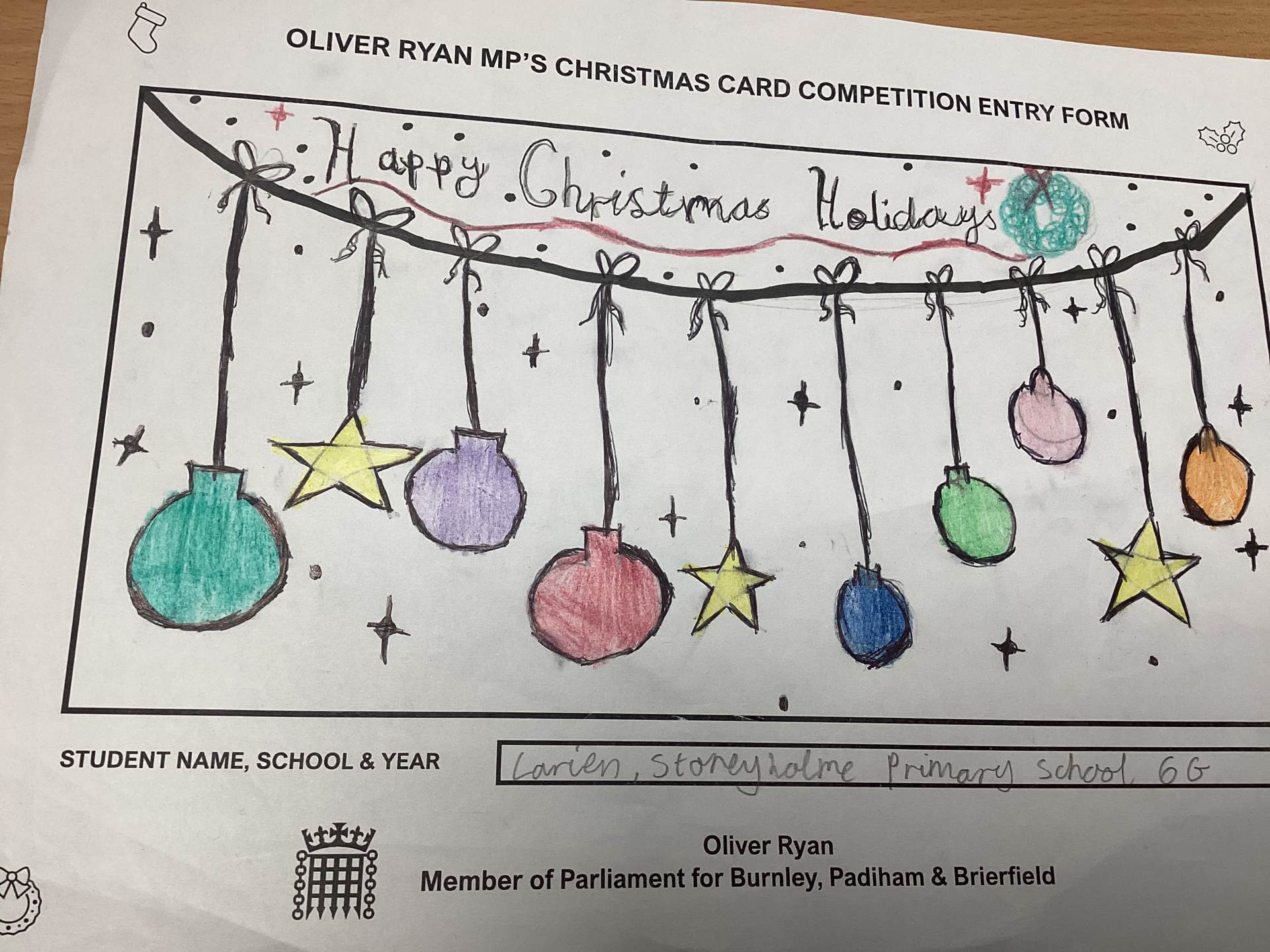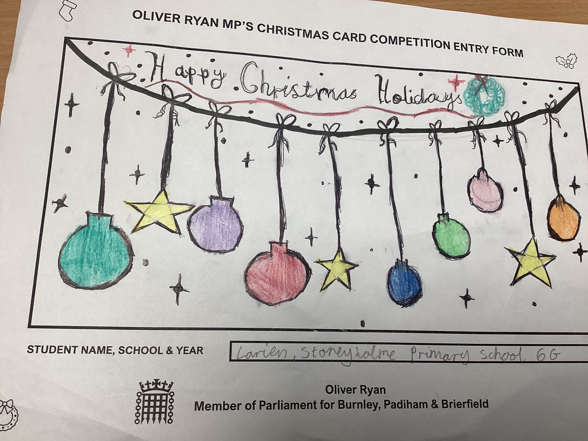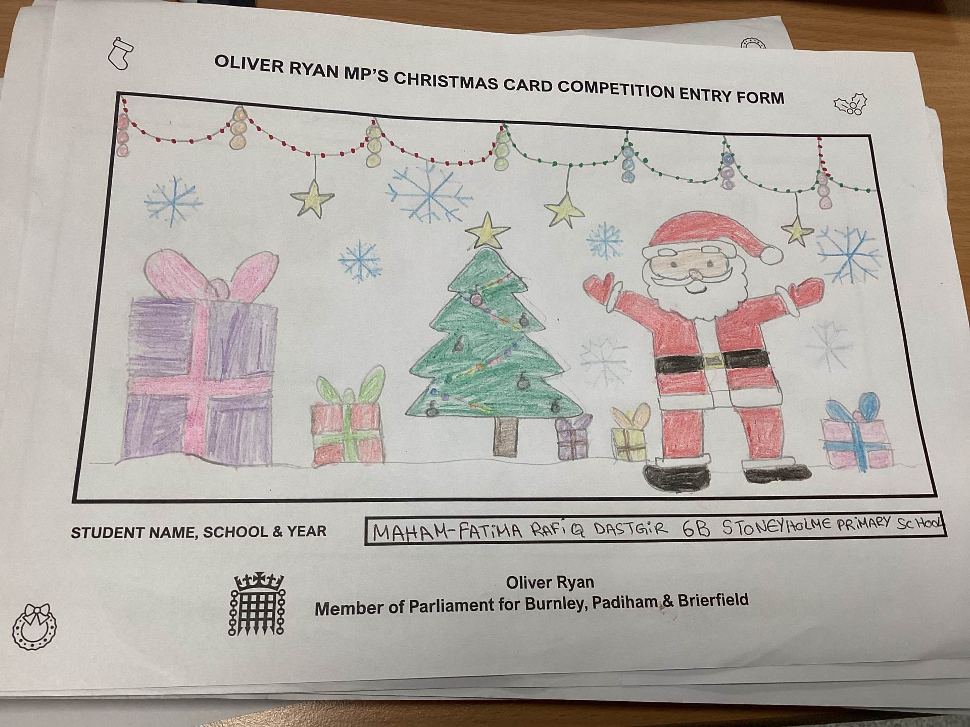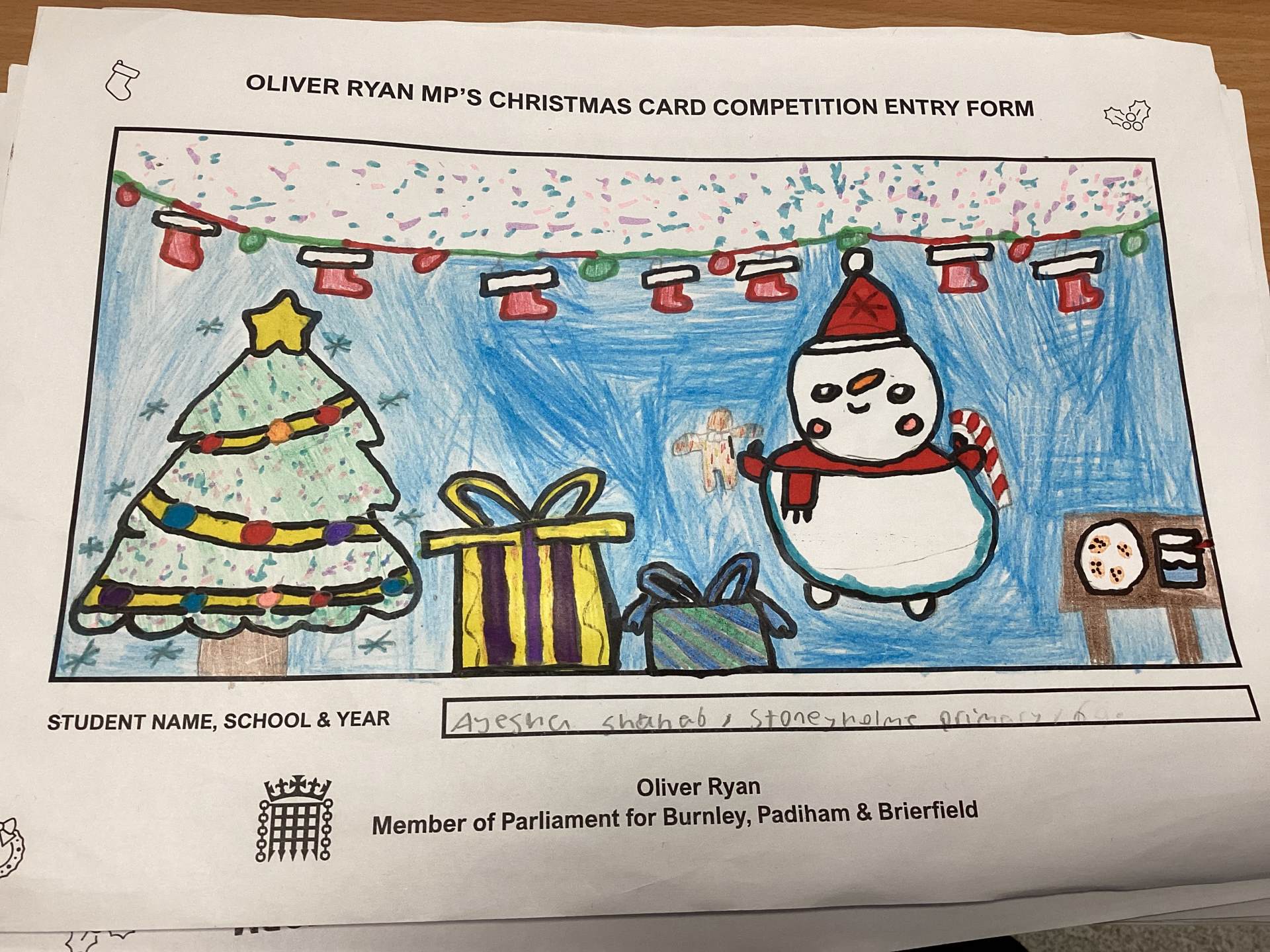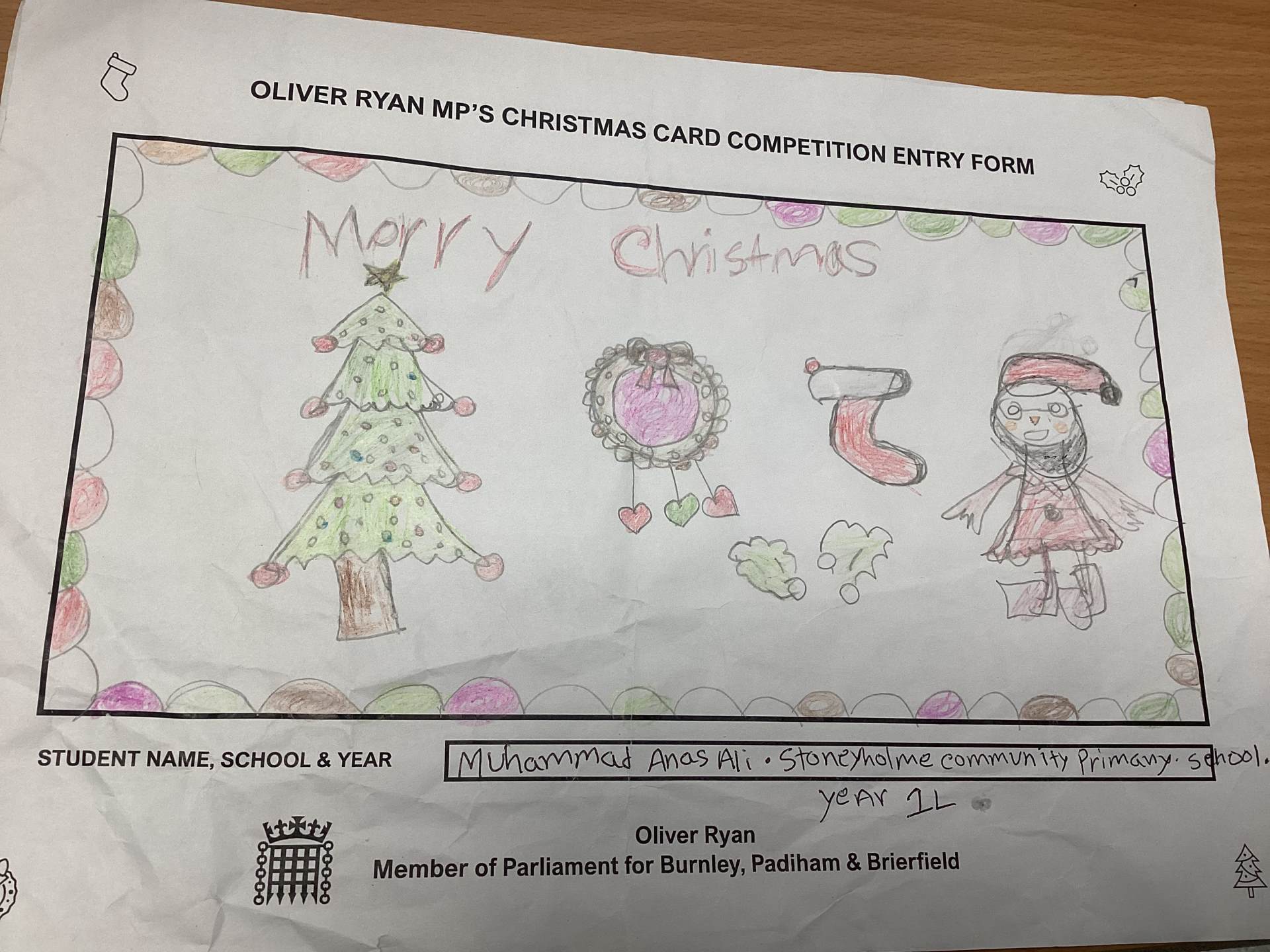 Oliver Ryan's Christmas Card Competition.