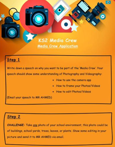 To become a Media Creator, children had to complete a photography, videography and audio test to evaluate their technical aptitude and creativity. After passing the ‘practical test’, children moved on to the ‘interview stage’. During the ‘interview stage’ children were tasked with working in groups where they would create and edit content of their choice. This task assessed children’s teamwork and problem solving as well as their creativity and vision.