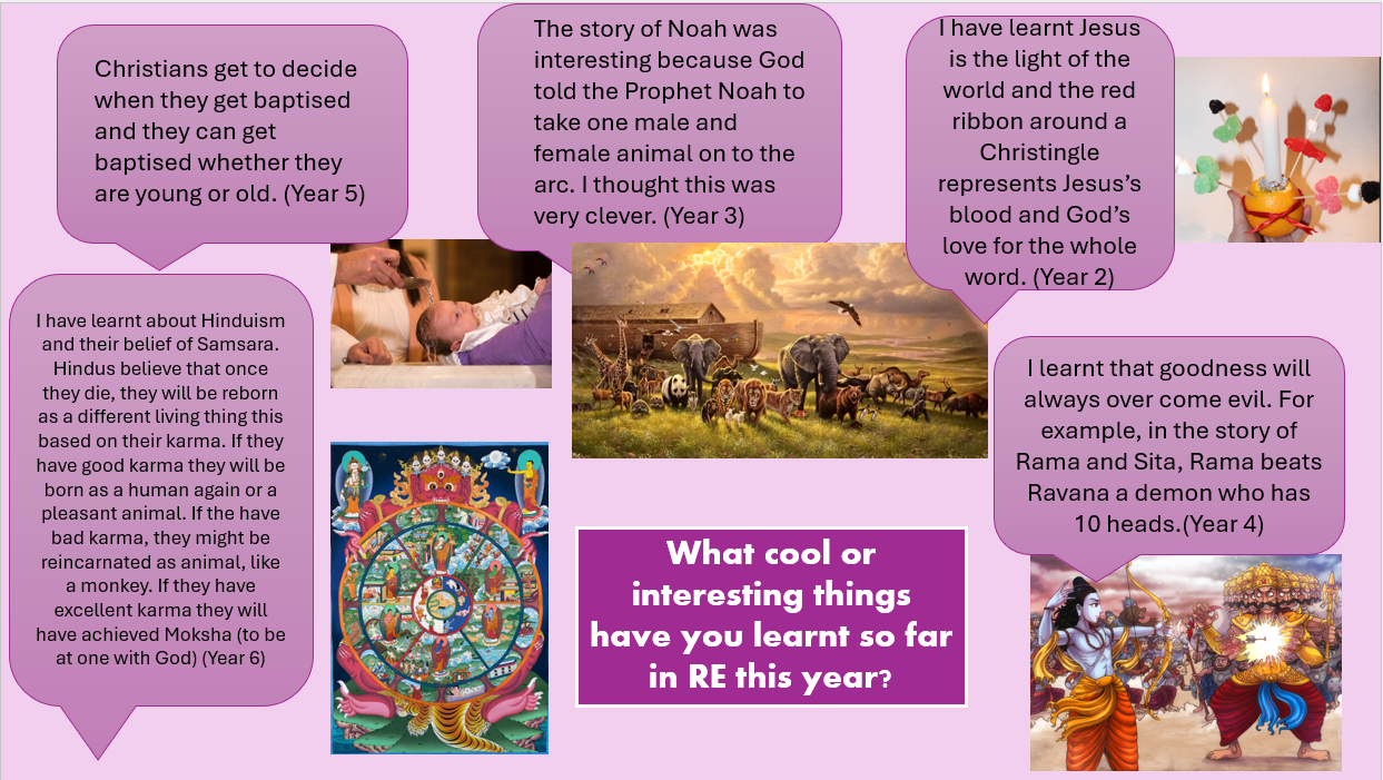 In Year Four, the children learnt what the story of Rama and Sita teaches Hindus about good and evil, and how celebrating the festival of Diwali reflects these beliefs.