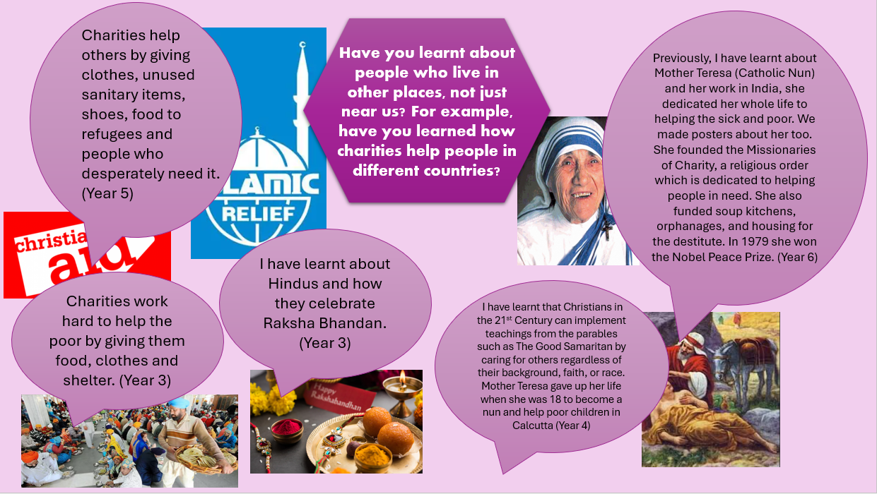 - Trips and visitors from different faiths to provide rich experiences and give pupil's opportunity to ask questions