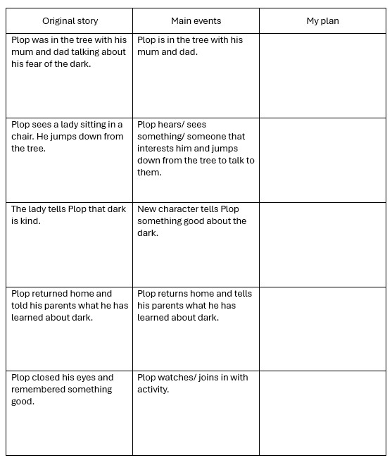 We are going to use the story map and actions together with the ideas we gathered about our favourite words and phrases to make changes to the short story we have been learning.
