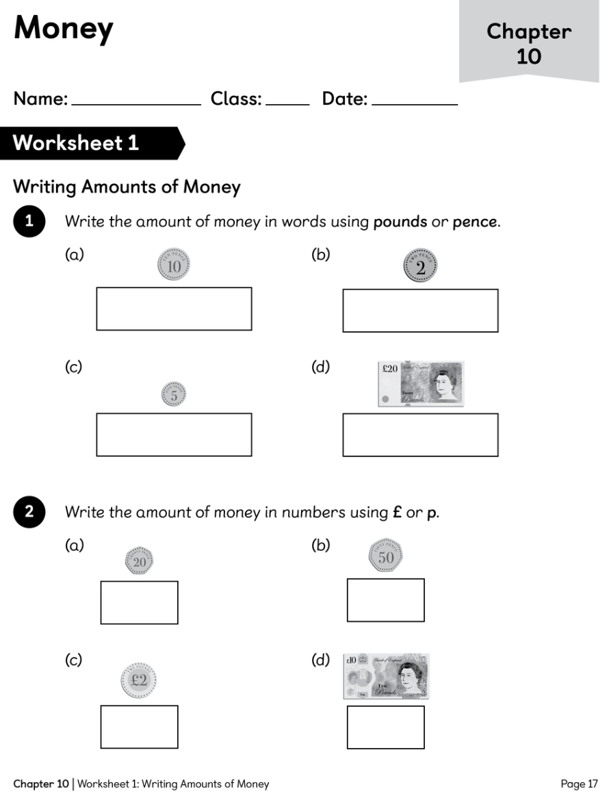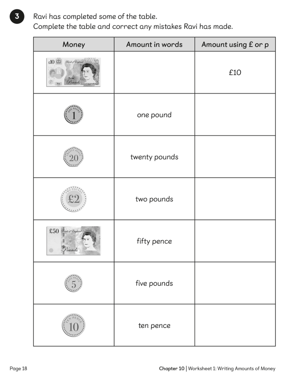 To be able to identify pounds (£) and pence (p) and their respective symbols.