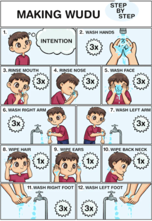 Wudu is a ritual washing, which is compulsory before prayer. Wudu is also referred to as ablution.