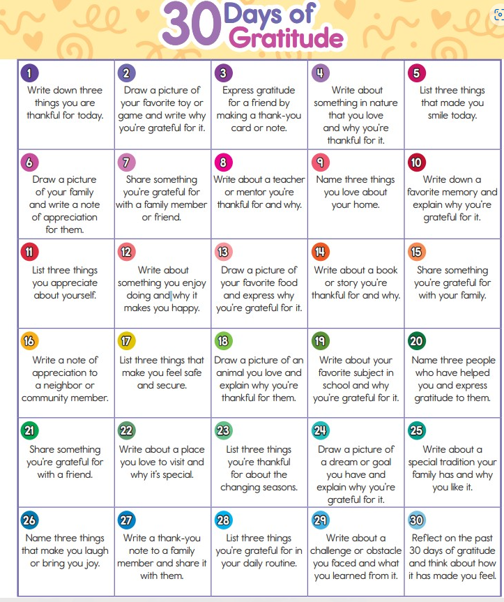 - Say it out loud: Tell someone you appreciate them, like your parents, siblings, or friends.