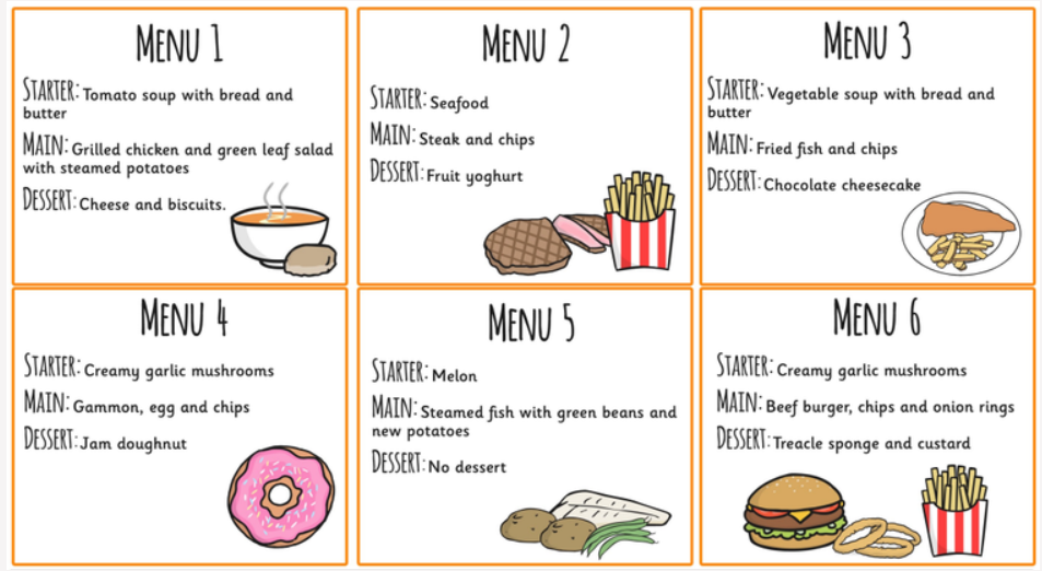 Here are a selection of meals that each family member orders whilst out for tea one evening. We need to decide if the menu is balanced or not.