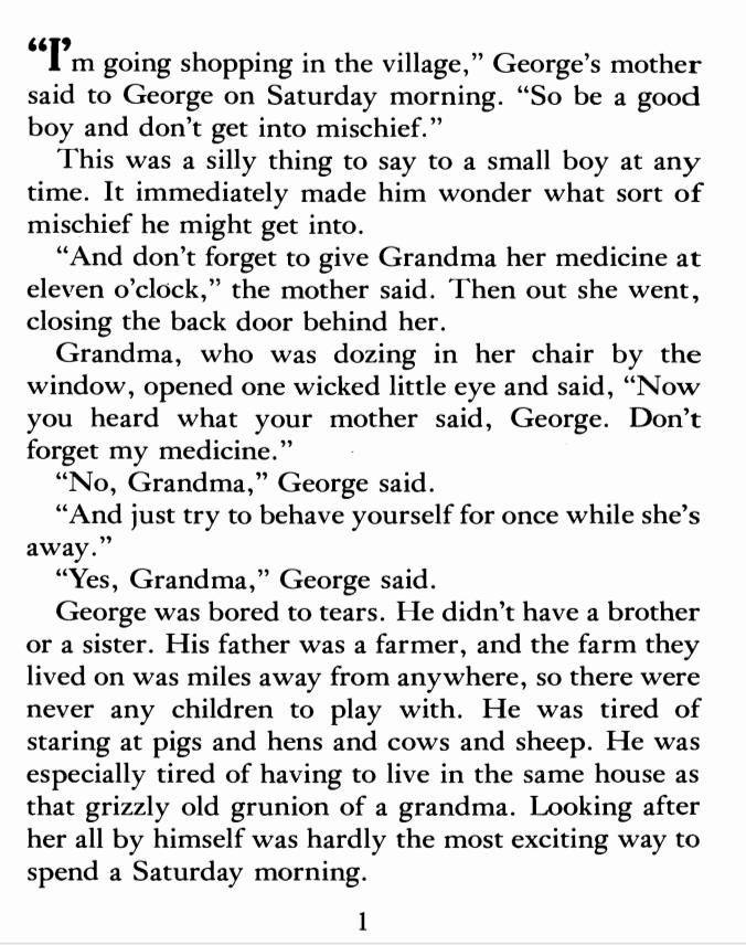 Today we are going to read a short piece of text from the book, George's Marvellous Medicine, written by Roald Dahl.
