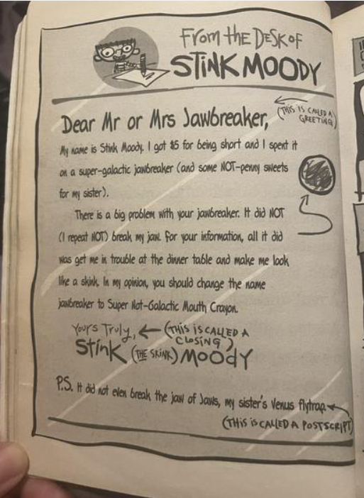 How is Stink feeling when he writes his letter? Give evidence to support your answer.