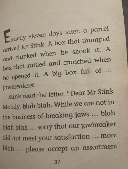 How is Stink feeling when he receives a reply for his letter? Give evidence to support your answer.