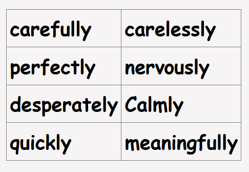 Task: Using the word bank of adverbs and pictures below construct sentences in your writing books.