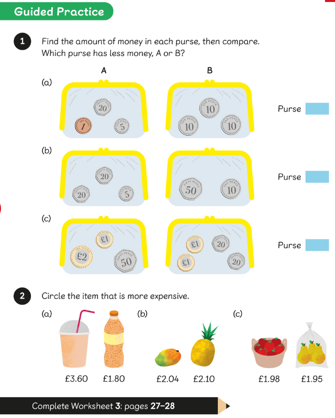 LC: To compare amounts of money.