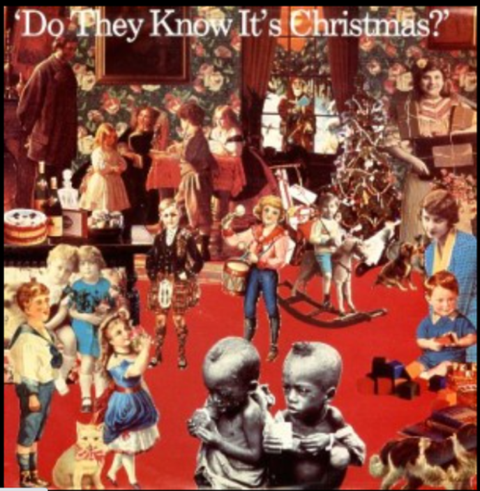 His other works include the cover of the Band Aid single "Do They Know It's Christmas?" This was a charity song to raise money to help starving people in Africa. Can you see how he has used art to send a message? What do you notice about the picture?