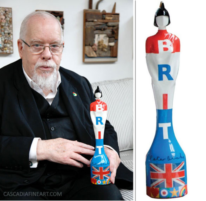 Blake also designed the 2012 Brit Award statuette. In 2002 he was knighted at Buckingham Palace for his services to art.