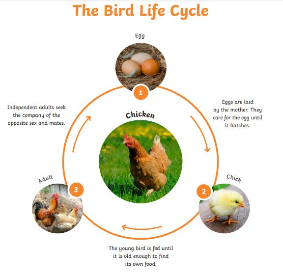 Think back to last week and compare the life cycle of a bird to the life cycle of a human.