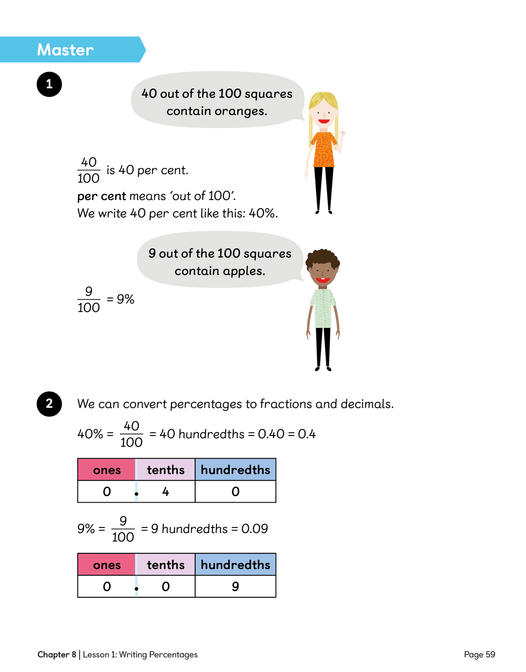 To be able to convert fractions with a denominator of 100 to decimals and percentages.