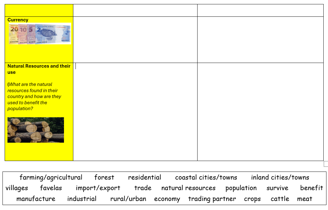 Use you planning table from last week to write an explanation text about Brazil and the UK.