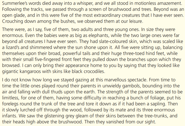 Explain how the descriptions of the iguanodons in this paragraph support the idea that they were both inoffensive and brutes.