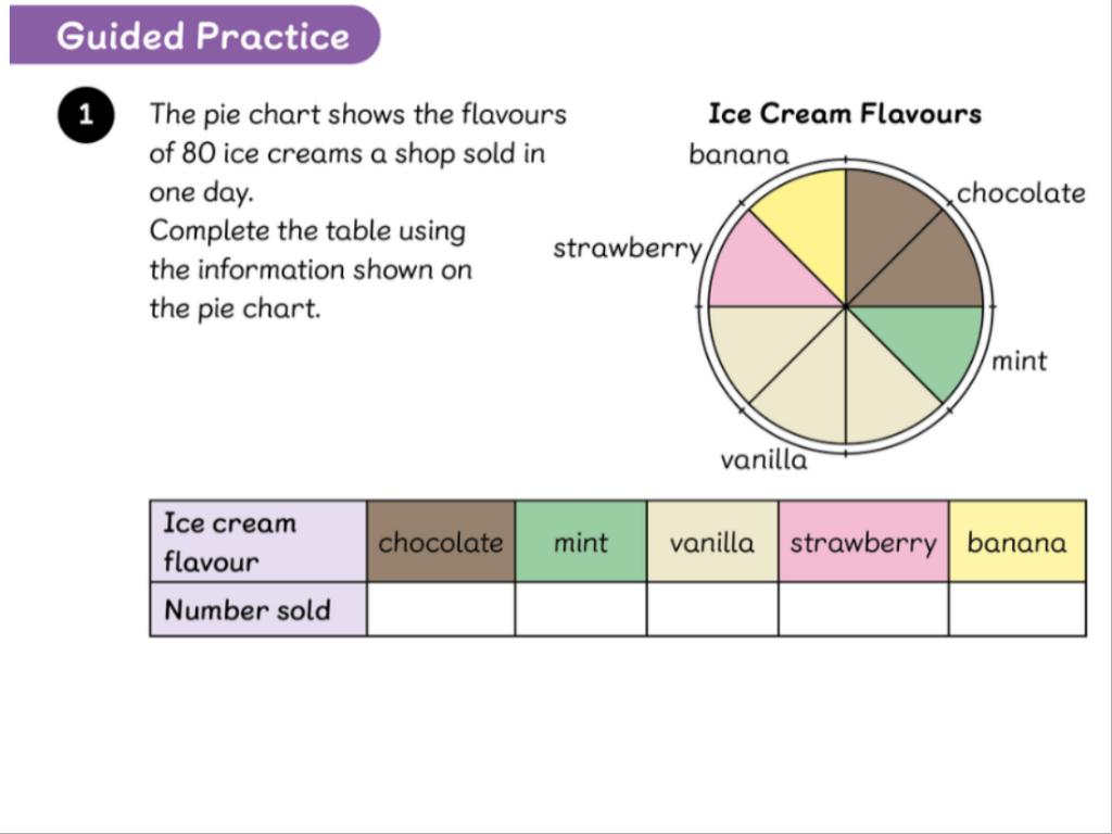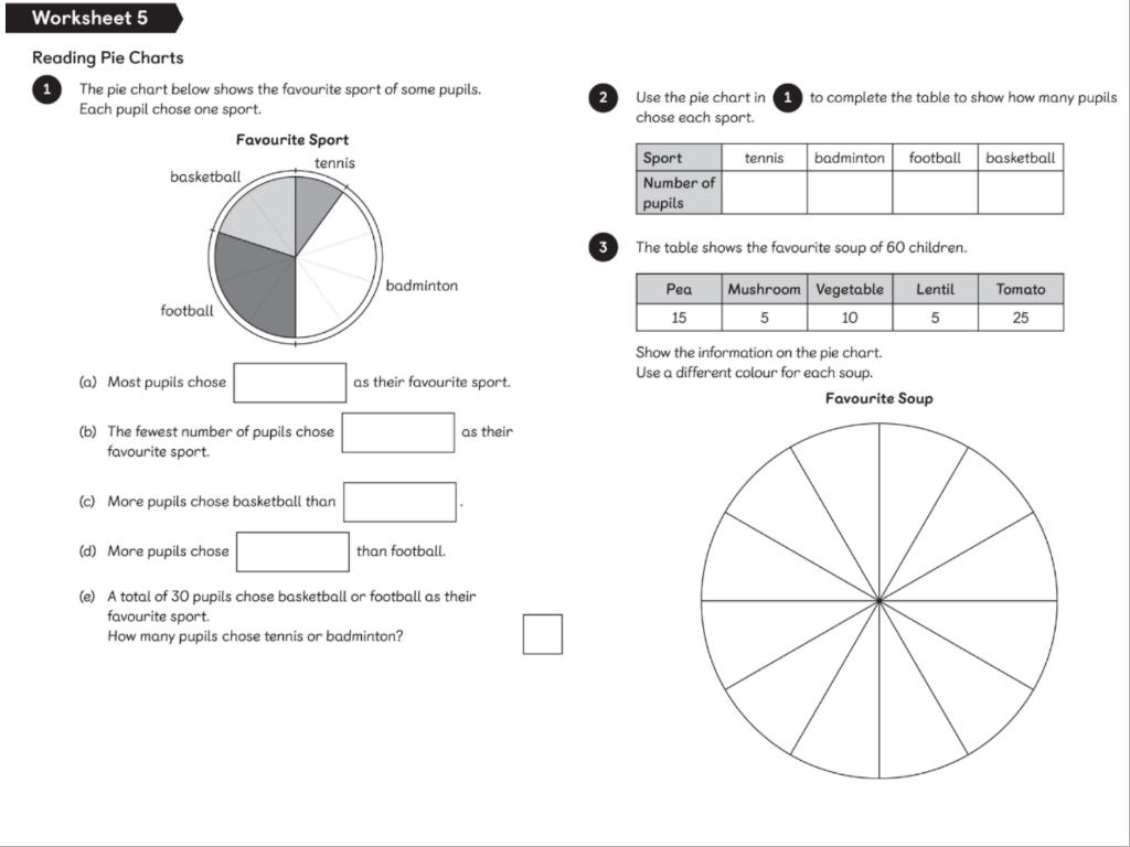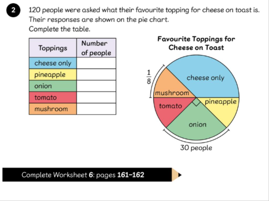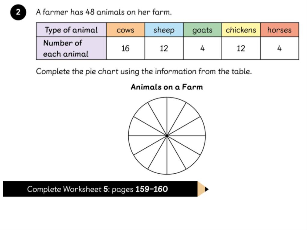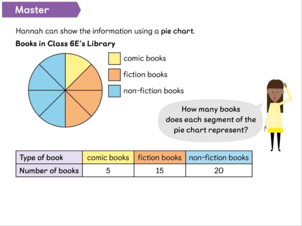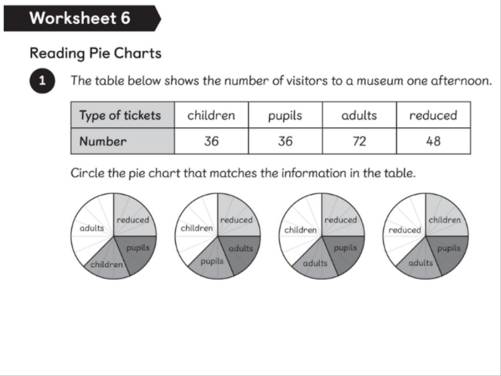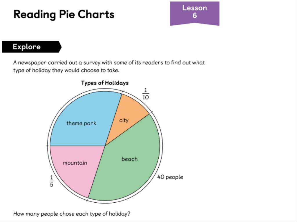 LC: To be able to read and interpret pie charts when they are split into equal parts.