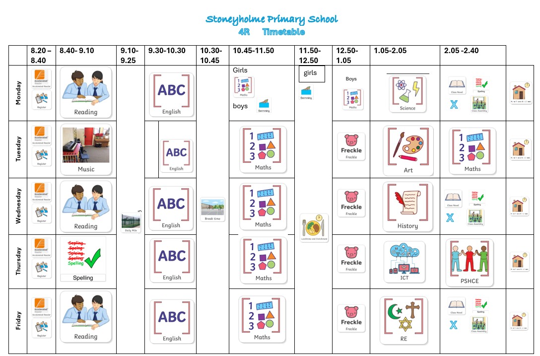 4R's class teacher is Miss Reid. The Learning Support Assistants in Year 4 are Mrs Rushna Khatun, Mrs Shahena Khatun and Miss Charlotte Conlan. The children will be taught by other specialist staff for PE, Music, Computing and MFL (Spanish) and Art.