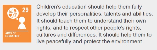 Article 29 – Goals of Education:We develop respect for the natural world and understand our responsibility to care for it.