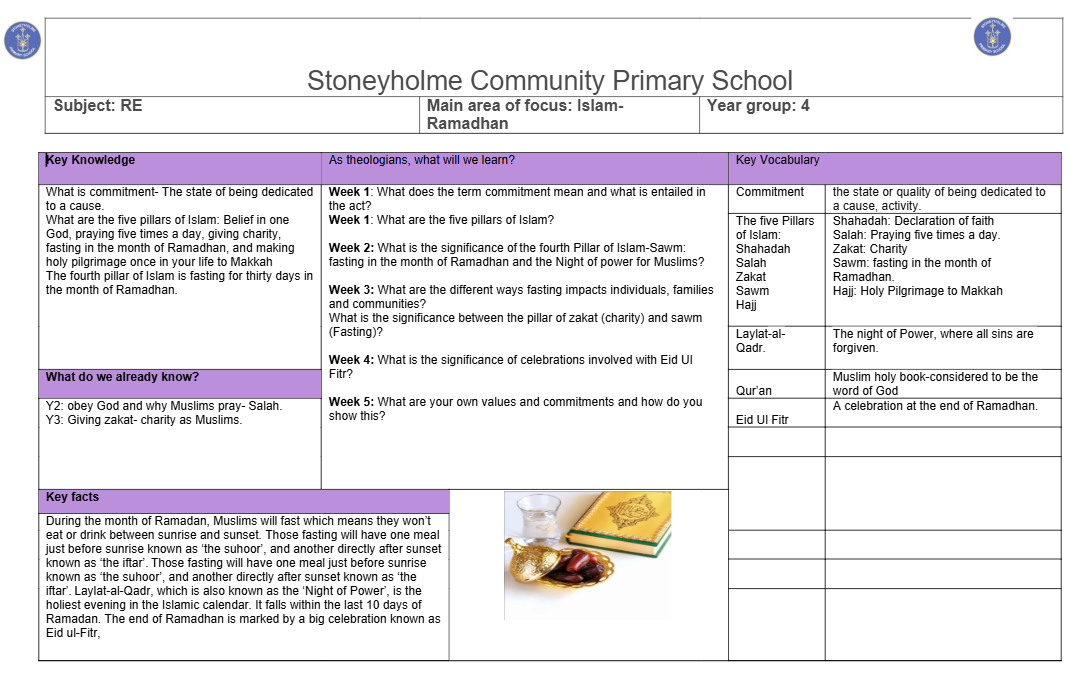 As theologians, we will learn what commitment means and how people show dedication to their faith. We will learn about the Five Pillars of Islam, focusing on the fourth pillar, Sawm – fasting during the month of Ramadan. During Ramadan, Muslims fast to show self-control and to remember people who do not have enough food. We will also learn about the pillar of Zakat – giving to charity, which helps support people in need, especially during Ramadan.