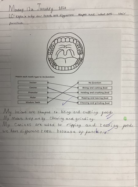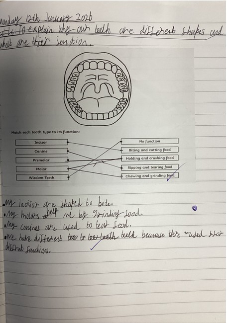 This links to our learning about our teeth, the digestive system, and how food helps keep our bodies healthy.