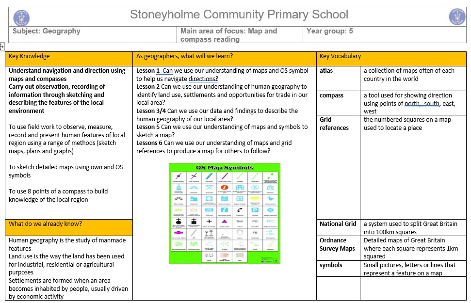 During this half term, we will prepare and carry out an investigation of our geographical environment through a field trip. The pupils will study maps and symbols in order to create and sketch their own maps. We will learn how to effectively use a compass to navigate our way and how to understand grid references. The children will conclude the year by going out into the local area to identify the human features of the environment and will use their observations to produce a data driven field report.