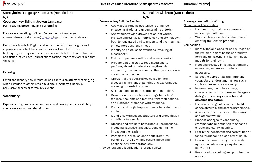 In English this half term, we will be studying a work of classic literature. We will explore the play Macbeth by William Shakespeare, through drama activities and close reading of the playscript. The pupils will use an incident from the play of Macbeth to create their own retelling by producing a narrative to match the text.