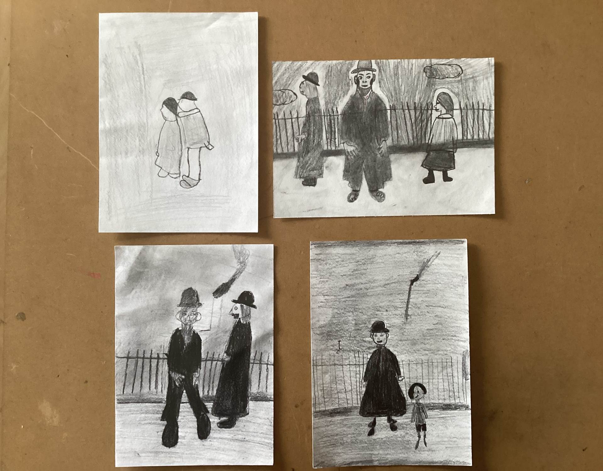 In learning about the work of L.S. Lowry, we will explore how he painted scenes of everyday life in industrial England. We will study his unique “matchstick” figures, use of muted colours, and simple style. We will also create our own Lowry-inspired artwork, showing people, buildings, and movement in busy town scenes.
