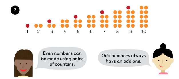 Have a look at numbers 3, 5, 7 and 9; What do you notice about the orange counters?