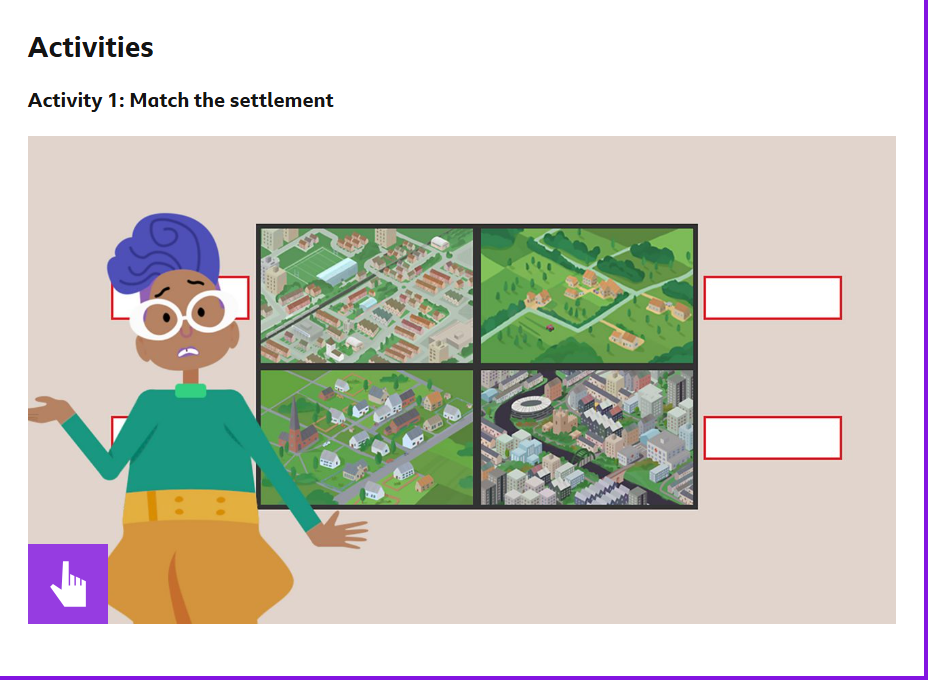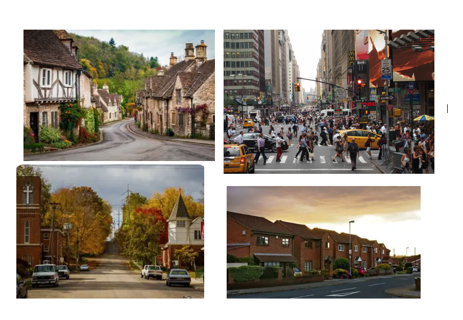 A city is the largest type of settlement, containing lots of buildings and lots of people. They usually have hospitals, sports facilities, universities, shops, offices, many houses and often a cathedral.