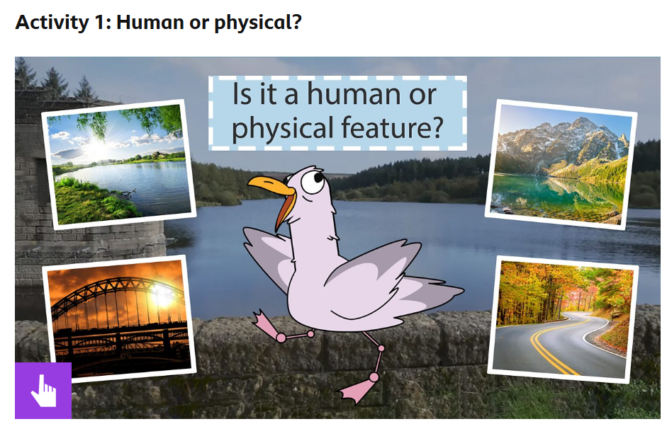 Talk with your partner about what you might see if you go to the seaside. We will share ideas and sort into human and physical features.