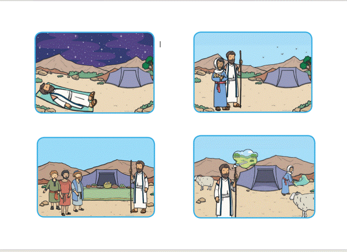 Can you cut the following pictures and stick them in the correct order in your RE book. Can you write a sentence next to each picture to explain what is happening in the story?