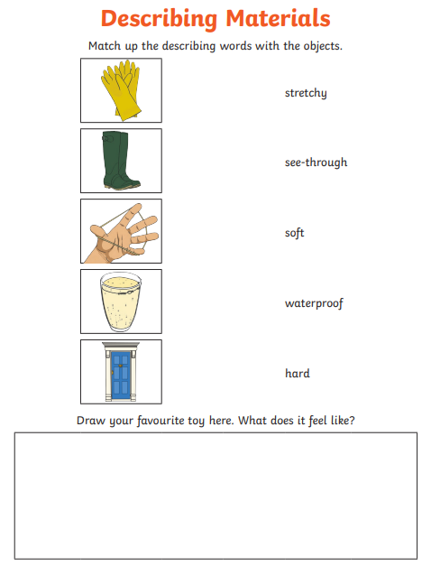 Look at the material and write down the properties. Use the keywords on your worksheet to help you