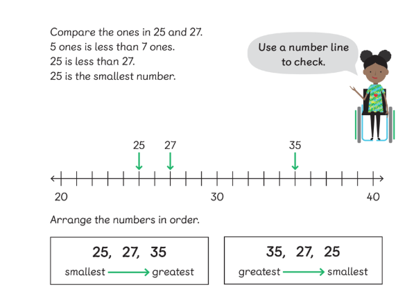 To be able to use place value to compare two or three numbers and determine which number is bigger or smaller. To be able to arrange three numbers in order of size.