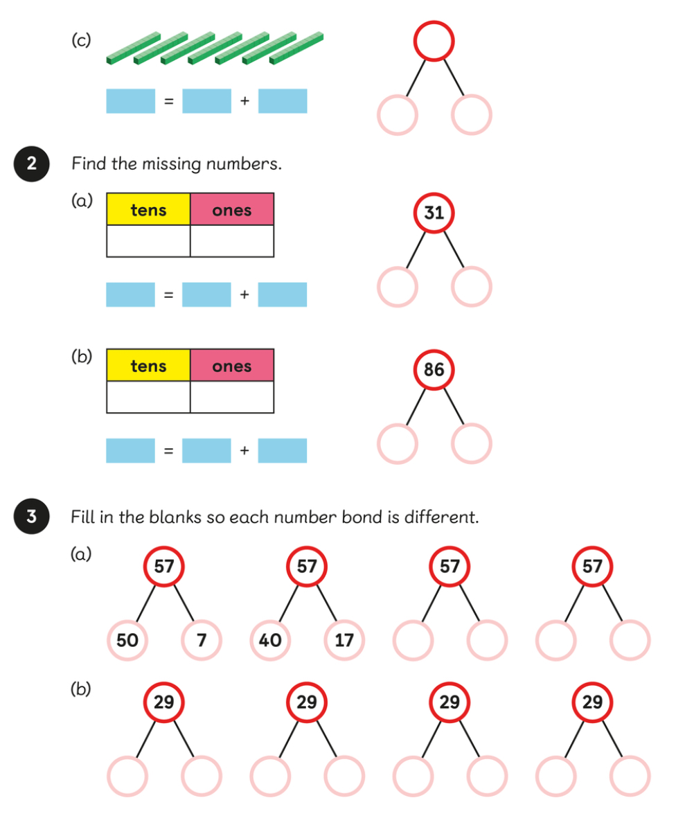 To deepen the understanding of the place value of each digit in 2-digit numbers using number bonds.
