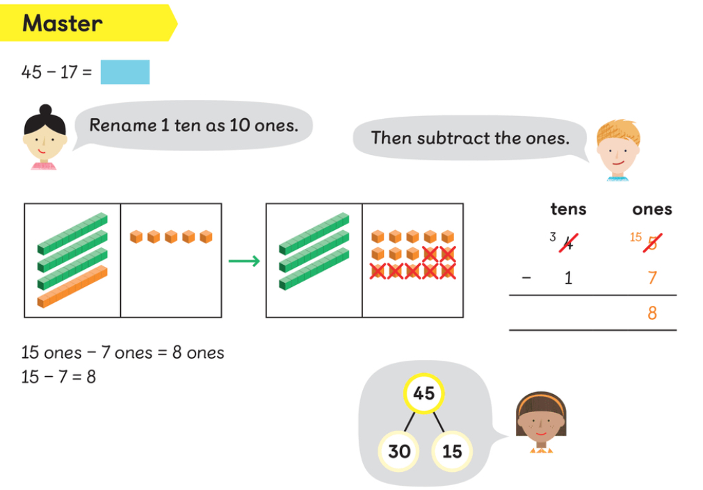 To be able to subtract a 2-digit number from another 2-digit number with renaming.