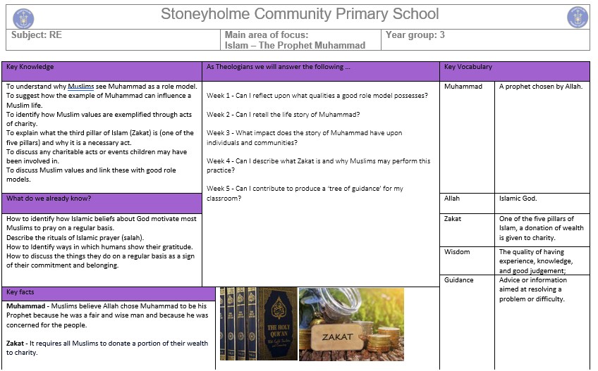 As Theologians, we will be exploring why the Prophet Muhammed (P.B.U.H) is an example for the Muslims. Children will be able to explain how Muslims follow the teachings of Prophet Muhammed (P.B.U.H) and the importance of charity within Islam.